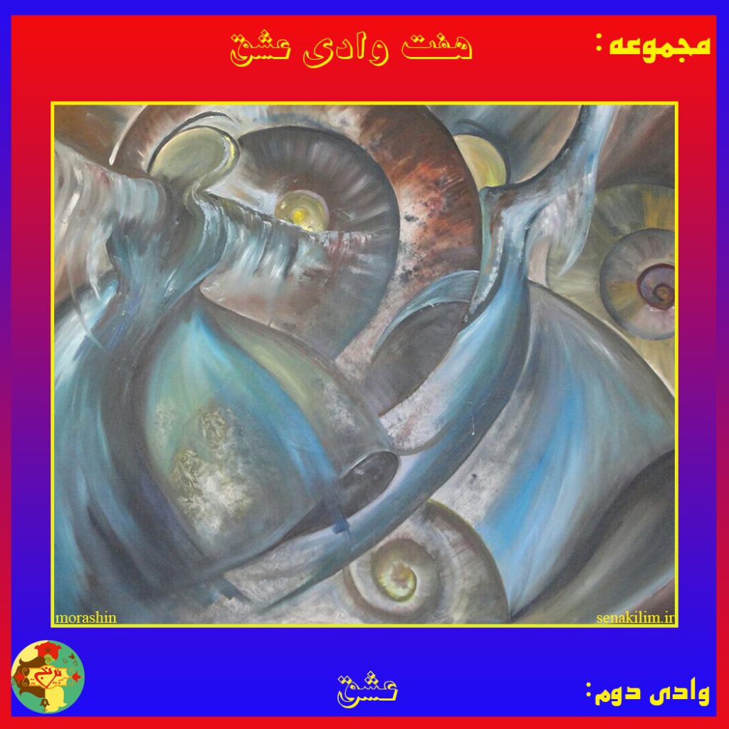 نام اثر : وادی دوم-عشق تکنیک رنگ روغن روی بوم ابعاد به سانتی متر : 100 * 120 سبک اثر : اکسپرسیونیسم انتزاعی برگهها: 1 2 3 4 5 6 7